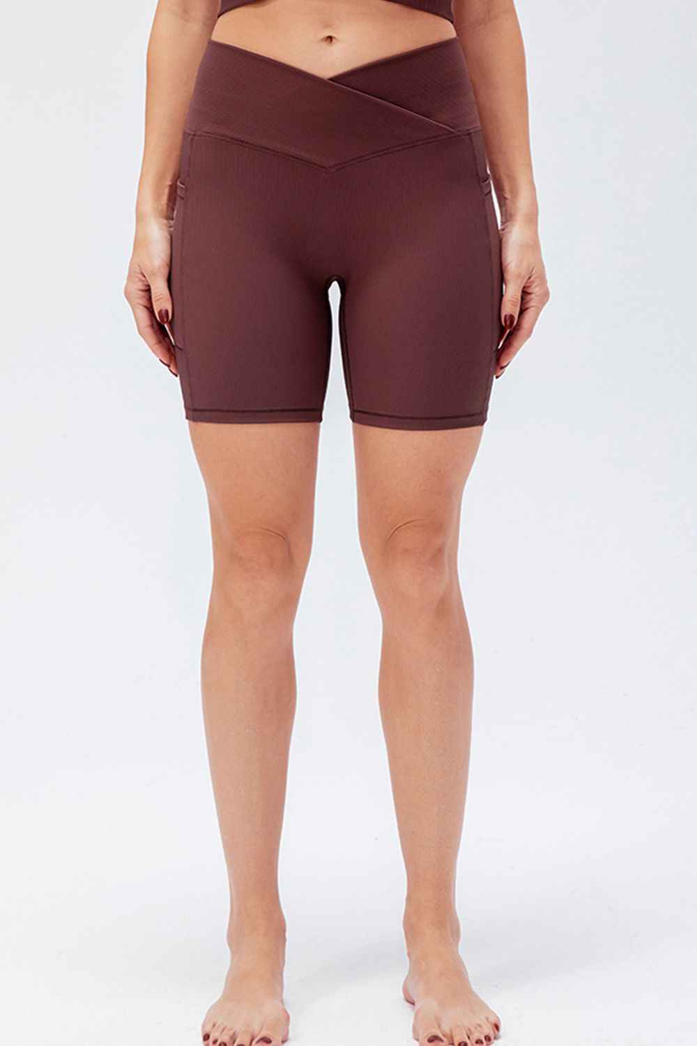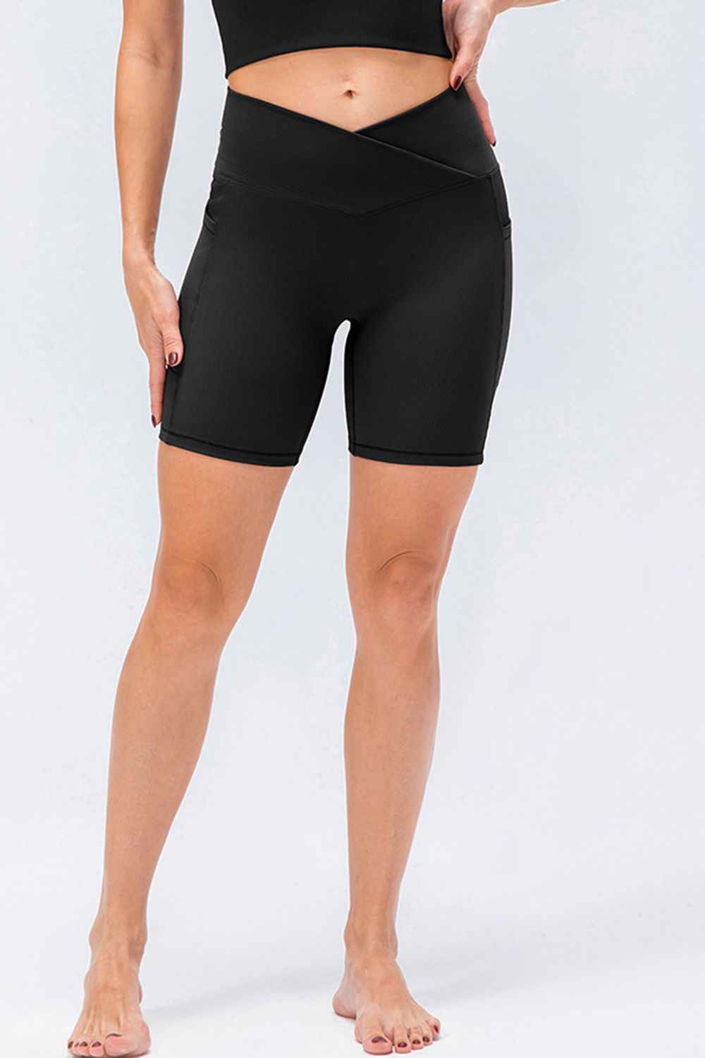 These athletic shorts offer support, comfort, and style. The V-shaped slim fit waistband enhances the silhouette while allowing full freedom of movement. Made with elastic, breathable fabric, perfect for workouts, running, or a sophisticated athleisure look.